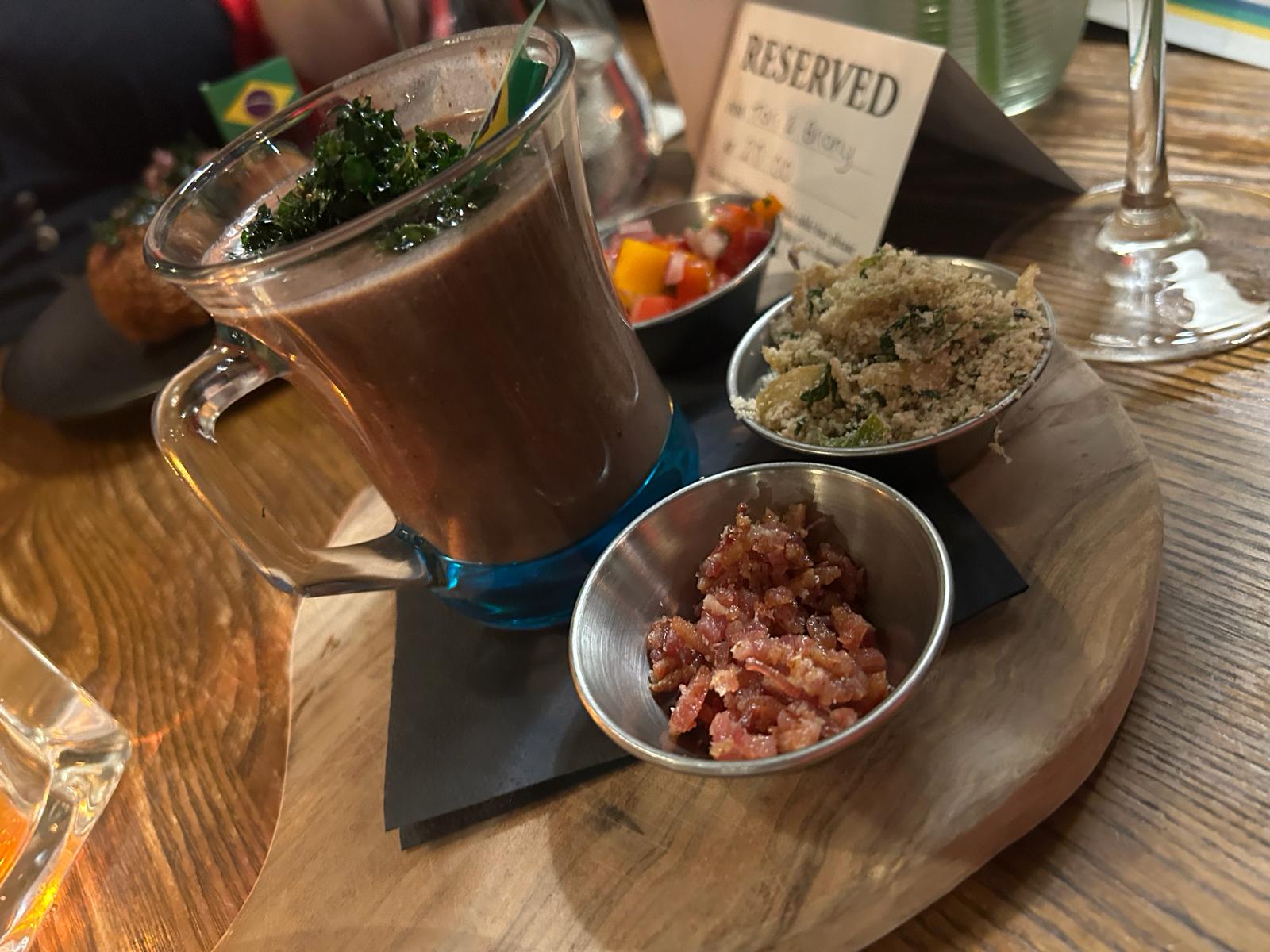 Our taste buds were in for a treat! Chef Gina, a true star of the evening, curated a stunning menu showcasing the vibrant flavors of Brazil. We began by sharing the “Caldinho de feijao,” a black bean broth with crispy bacon, perfect for dipping with toasted casava flour or a touch of Brazilian salsa. The grilled octopus (“Polvo”) was cooked to perfection and nestled on a fresh, crisp salad. And the “bolinho de feijoada,” black bean croquetas, were rich, deeply flavourful – I have to admit, I could have easily devoured a whole plate myself!