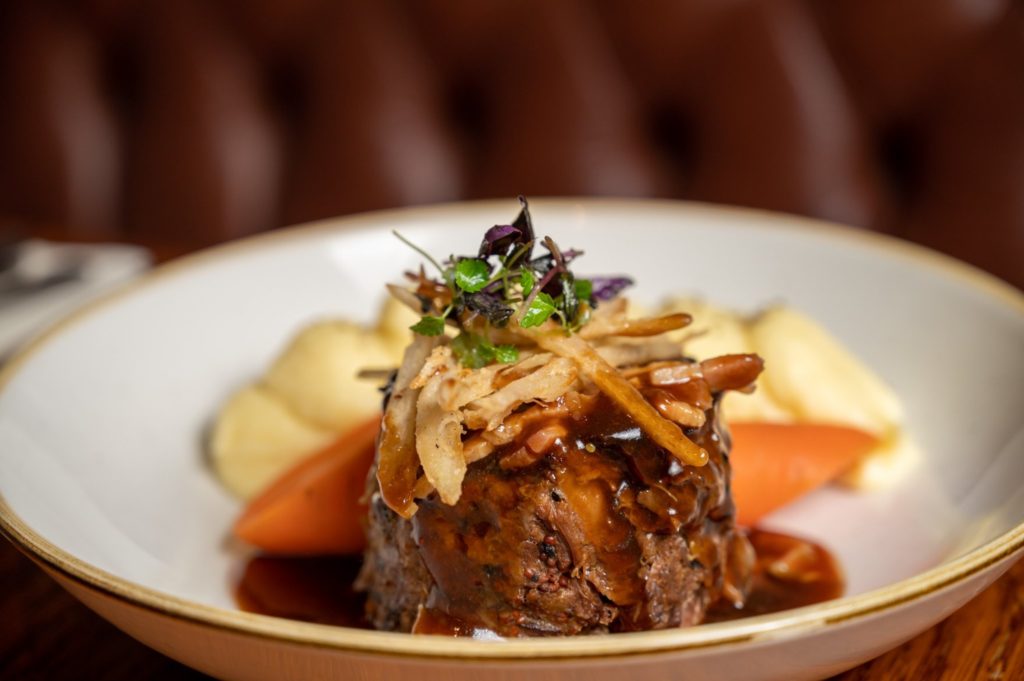 Braised pulled beef shin, with a beef Cornish pasty, clotted cream mash and confit carrot – oh my word, how amazing does that sound? The beef is sourced from the butchery at Hayrack Church Farm just down the road in Thornton-Le-Moors, where they fully understand the importance of provenance – everything sold is fully traceable back to the farm of origin.