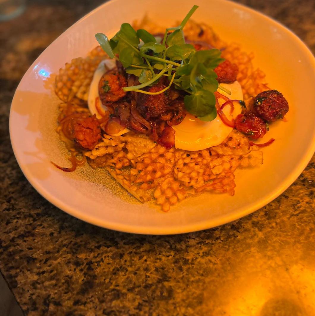 With delicious Yates Greer sausages and Mamars bread it’s hard to resist the breakfast but the Huevos Rotos is also a huge hit. Crispy waffle fries loaded with chorizo, fried onions and runny eggs.