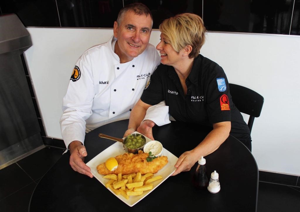 Weston Grove is a small, independent, family run business with an amazing team who have won many national awards for their responsibly sourced traditional fish and chips. Richard and Josette Foster acquired the shop in 2016 which they now run with Josette’s daughter Joelle and her partner James.