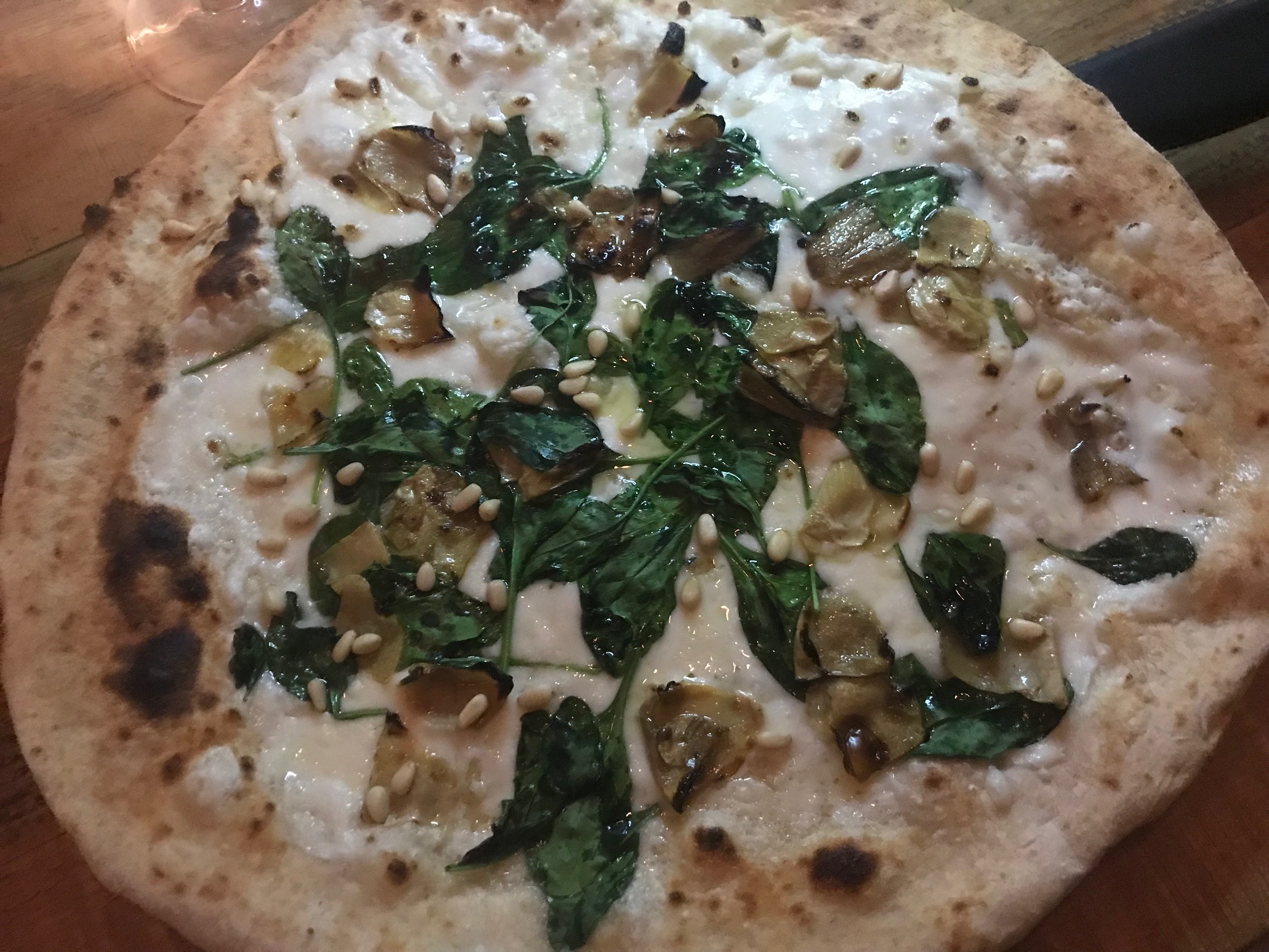 On to mains and since Urbano Pizzas are always crispy and flavourful, I went for the Artichoke, Spinach, Pine Nuts Pizza with more Vegan Mozzarella and garlic oil. I will confess to having been swayed by the fantastic photo of this particular pizza I had earlier seen on twitter and it absolutely lived up to my high expectations.